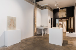 Juntament amb aquestes peces treballades en cera, també es presenten alguns objectes que aporten noves capes de significat i lectures a la mostra. Un element particular és l’arxivador, que resguarda l’interior i ens remet a l’acció de fer memòria i recopilar. L’escala i la posició de les peces que aquà trobem ens permeten mirar-les cap endins, com si aprofundÃssim en el record, o contemplar-les des de lluny, en un exercici de reconeixement i de connexió amb alguna cosa que ja hem vist abans, però portada a aquesta exposició com una mena de seqüència o fotograma al qual accedir a poc a poc.