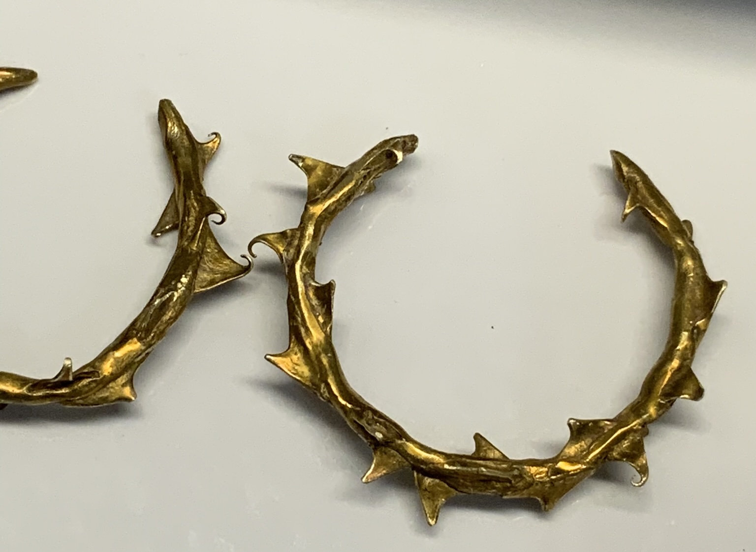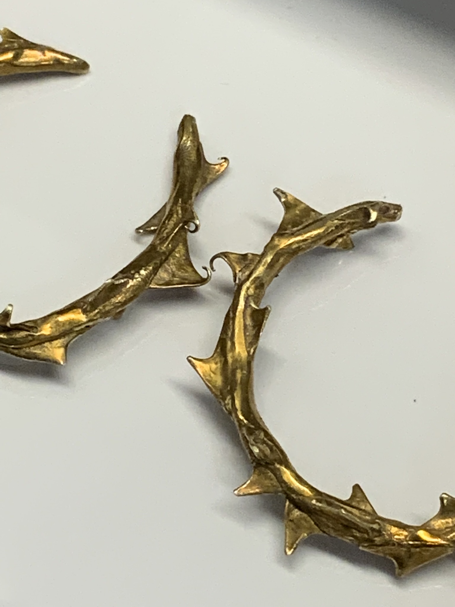 Inspired by the Sant Jordi festivities in Barcelona, these earrings were created from thorns discarded by local florists, melted into brass to turn them into jewels.