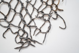 Por lo que respecta a la cerámica, «A Body in Fragments» es una instalación que ofrece una exploración única de la figura humana y la memoria a través de fragmentos cerámicos, cada uno con motivos individuales. A ella se suman las piezas «Dürkheimer. 10», una representación de la casa donde la artista vivió en Alemania durante cinco años, que ofrece una ventana a su experiencia personal y su conexión con el entorno; y también la instalación de gran delicadeza titulada «Netz», que invita a los espectadores a sumergirse en un mundo de intrincadas conexiones y significados ocultos.