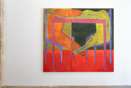 Entre las piezas de pintura, se destaca «Talk IV», caracterizada por su representación de la conversación a través de una paleta de colores muy exigente y una composición modular. Esta obra forma parte de la serie «Talk», que ha estado en desarrollo desde el año 2018. El enfoque de Diel hacia el motivo y el color, y cómo estos dos elementos se combinan, se hace evidente en el proceso de trabajo de la artista. Buscar y encontrar colores es tan importante como el motivo en sí mismo, ya que es a través de la composición y el equilibrio de los tonos que se crea la atmósfera donde los sujetos interactúan en la pintura.