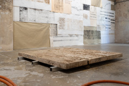 Más allá de la sala de exposiciones propiamente dicha, en un espacio habitualmente privado, la exposición continua con un gran dietario que se va rellenando periódicamente, cartografiando la evolución del musgo y otros entes vivos que transforman y enriquecen la losa de travertino. Acompañan el dietario-en-progreso los documentos de trabajo realizados por los estudiantes del MEATS Elisava. La última pieza, el váter del fondo, es la proyección de un vídeo que explica el proceso de trabajo y el resultado de la intervención temporal en el pabellón de Lilly Reich.